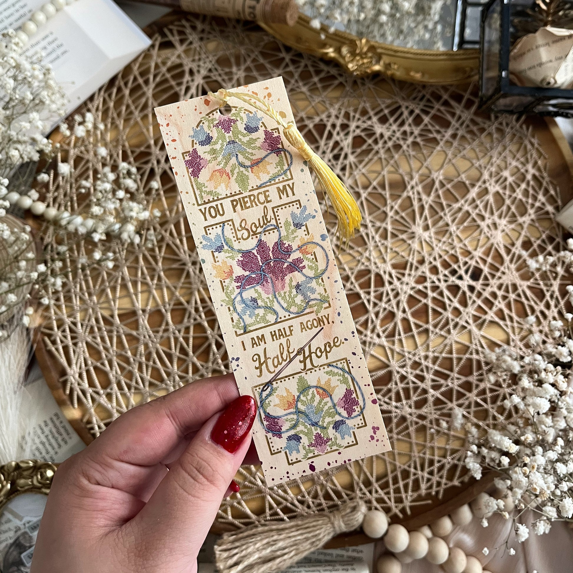 The Half Hope design features a quite from Jane Austen's Persuasion and a matching tassel, and is printed on Maple. Tassel colours are random, from a range of colours that match the art.